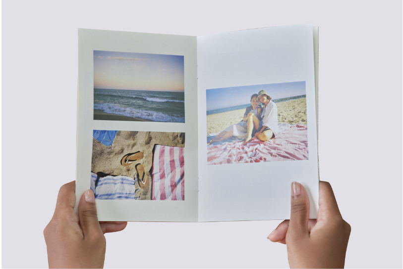 雑誌のような手軽さと手作り感のあるフォトブック。コンパクトな中とじ製本(ホッチキス製本)で写真を気軽にカタチにできます。