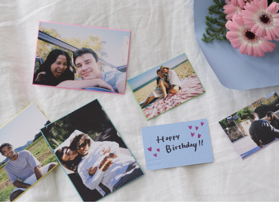 写真プリントをオリジナルカードに貼り、裏面に手書きでメッセージが書きこむことができます。